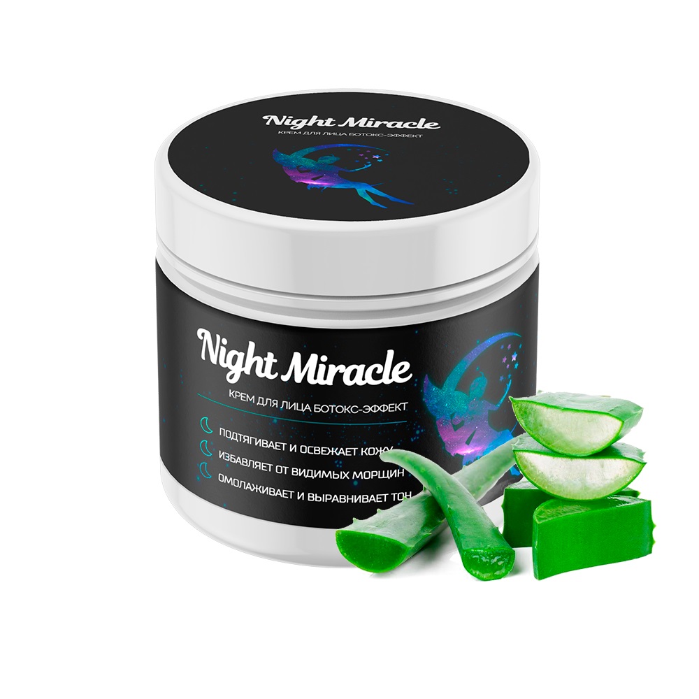Комплекс Night Miracle состоит из крема для лица, в основе которого лежит ретинол, способствует ускоренному обновлению клеток кожи, улучшая её текстуру и общее состояние. Его действие усиливает инновационный коктейль мощных компонентов для кожи: Гидролизованный Коллаген, Гиалуроновая кислота, Масло Ши, Алоэ Вера, Глицерин, Витамин Е и др.